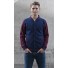 - Knitted collar, cuffs and waistband with stripe details